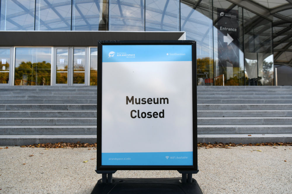 10月21日,通知布告牌显示位于美国的美国国度航空航天博物馆因“停摆”而封闭。记者李睿摄。