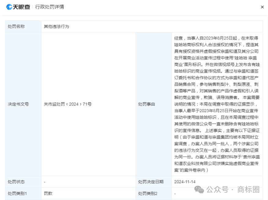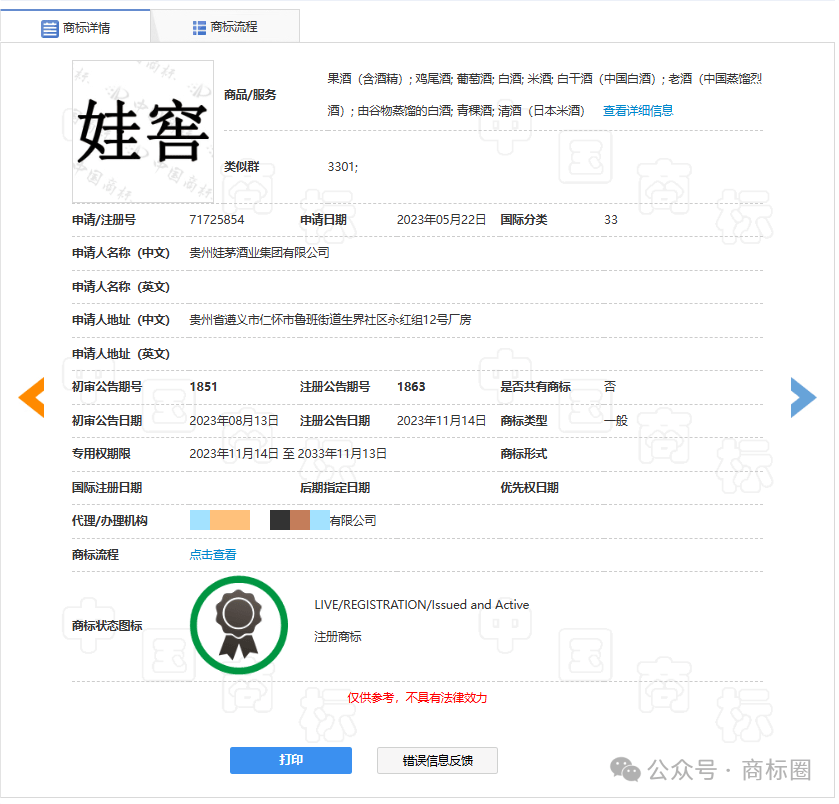 之前我们分享过一个案例,娃茅酒碰瓷茅台,被杭州市西湖区市场监视办理局罚了51万余元。原认为51万的罚款能够使娃茅酒业改换成长策略,没想到本年娃茅摇身一变动名为娃窖再次推出新产物,又被杭州市市场监视办理局罚了30万。据悉,贵州娃茅酒业集团无限公司利用哇哈哈品牌字样、某某抽象以及娃哈哈公司相关文字内容用于企业及商品宣传,惹人误认为是娃哈哈商品或者取茅台集团存正在特定联系。千万没想到“娃茅酒”被罚后,该企业还有后招。小编通过查询发觉,早正在客岁5月,贵州娃茅酒业集团无限公司已申请注册“娃窖”商标,国际分类为酒、告白发卖。抛开娃茅酒业的成长规划不说,商标结构认识仍是很超前的。值得一提的是,贵州娃茅酒业集团无限公司还于本年 4 月申请注册了数枚 “窖哈哈”“哈台” 商标,目前这些商标的形态大多已注册成功。商标的注册凡是是企业品牌扶植的主要环节,通过注册奇特的商标,能够企业的学问产权,提拔品牌的辨识度和价值。然而,娃茅酒业注册的这些商标名称,让人不由联想到娃哈哈等出名品牌,这能否又是一种成心为之的策略呢?不只如斯,小编通过查询发觉贵州娃茅酒业集团无限公司的现实节制人是哇哈哈集团创始人的弟弟泽后,娃茅就业两次碰瓷哇哈哈的行为就更让人摸不着思维了。从整个事务来看,娃茅酒业这两款产物的发卖行为不只遭到了法令的制裁,也给其他企业敲响了警钟。正在市场经济中,公允合作是根基准绳,企业该当依托本身的实力和立异来成长强大,而不是通过不合理手段去获取短期的好处。打铁还需本身硬,想通过“碰瓷”这一招,来快速实现品牌突围的径,早已走欠亨了。定位为以学问产权为焦点的一坐式立异创业办事平台。公司成立之初就立下了“让企业少走弯,让员工成长幸福”的取初心,一直“受人之托,一直执念以严谨思维去办事客户,做值得相信的一坐式企业办事平台。巨商别离正在、西安、洛阳、成都、上海等地设置区域运营核心,搭建了200余人的专业参谋办事团队,整合孵化跨越500项优良企业办事产物,赋能提拔企业雇从品牌化、科技化、数字化程度,通过建立专业化赋能中台+区域运营核心系统,为企业雇从供给从企业创立、成长、强大整个生命周期所需的各项专业办事。巨商立志成为中国最具价值的立异创业办事平台,系统性帮帮企业雇从提拔品牌抽象、聪慧、提高运营效率,帮力企业由小变大、由大变强!学问产权正在品牌识别取奇特征、品牌抽象取诺言、推进品牌增值取贸易化、提拔市场所作力以及降低运营风险等多个方面至关主要。巨商集团具有一支专业的商标品牌办事团队,为客户供给全流程处理方案,包罗注册、、运营及计谋规划。团队经验丰硕,通晓国表里律例,成功案例浩繁,帮力企业提拔品牌价值取市场所作力,办事高效靠得住,若有相关问题均可征询。学问产权:商标注册(国表里)、商标买卖(国表里)、商标案件、、无效、复审等疑问杂症)、版权登记(美术、文字等)、专利(发现、适用新型、外不雅、让渡)、学问产权托管、软件著做权登记、学问产权评估、学问产权质押、学问产权、专利、融资专利池扶植、学问产权买卖。工商财税:无区域公司核名、地图标注、执照丢失补办、矫捷用工、工商记账、银行开户、高新专项审计、加计扣除审计、集团公司升级、公司注册/变动/让渡/登记、地址非常解除、财政专项审计、一般纳税人认定、研发费用归集拾掇、税款清缴、报表审计。品牌孵化:LOGO设想、瓶型设想、画册设想、网坐设想、项目筹谋、包拆筹谋、产物筹谋、包拆设想、VI全案设想、起名筹谋、收集优化、品牌全案、招商筹谋、项目打算书、招商大会。企业办事:企业信用修复、条形码申报、冠军代言、白酒定制、法令征询、股权设想、百度百科、官文发布、400德律风、非制人才库、新运营、无形资产增资办理征询、合同草拟、央视告白、软文营销、海外坐运营。互联网天分:互联网消息办事营业(ICP)、外商投资ICP/EDI、正在线数掘处置取买卖处置营业(EDI)、消息办事营业(SP)、互联网接入办事营业(ISP)、内容分发收集营业(CDN)、互联联网数揭核心办事(IDC)、增值电信营业、国内互联网虑拟公用网营业、收集文化运营许可证、互联网药品消息办事营业、动漫/音乐/曲播网文。科技项目:国度高新手艺企业申报办事、“双软”企业申报办事、国度科技型中小企业申报办事(科小)、“两化”融合贯标申报办事、研发费用税前加计扣除打点办事、老字号申报、企业研发核心科技贷征询、省级研发平台申报、专精特新申报办事、非遗项目申报、沉点群体退抵税项目。企业信用品级:AA信用企业、AA资信企业、诚信司理人/诚信企业家、AA质量办事诚信企业、AA沉合同取信用企业、AA沉办事取信用企业、AA沉质量取信用企业、AA诚信运营示范单元、AA诚信供应商。许可天分:停业性表演许可证、出书物运营许可证、劳务调派许可证、食物运营许可证、人力资本许可证、二类医疗排械运营存案、拍卖运营许可证、林草种子运营许可证、三类医疗器械运营许可证、电视节目制做许可证、烟草专卖零售许可证、道运输运营许可证、建建企业天分。消息天分:CMMI软件力成熟度模子集成(三-五级)、CCRC消息平安办事天分八大类、ITSS消息手艺办